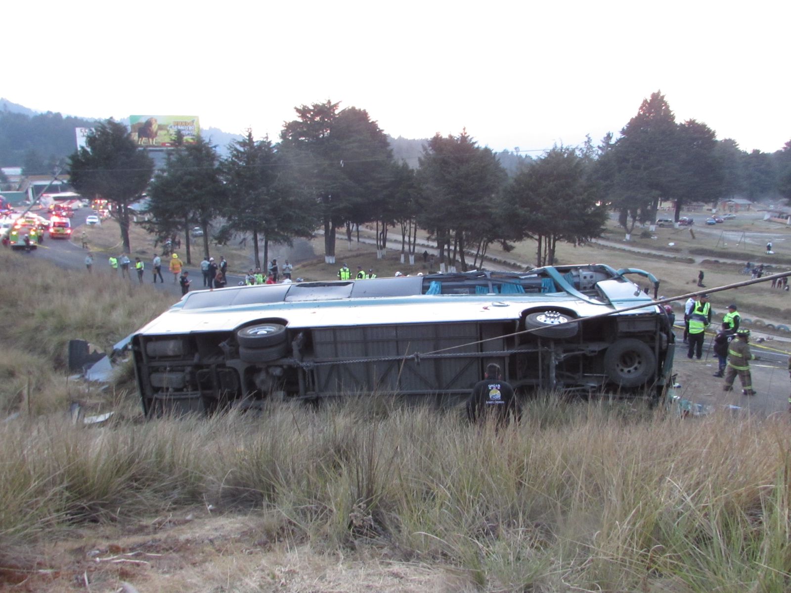 La volcadura de un camión de pasajeros dejó saldo de tres personas sin vida y 35 lesionados en la zona turística de La Marquesa, los heridos tuvieron que ser hospitalizados debido a la gravedad de los golpes.