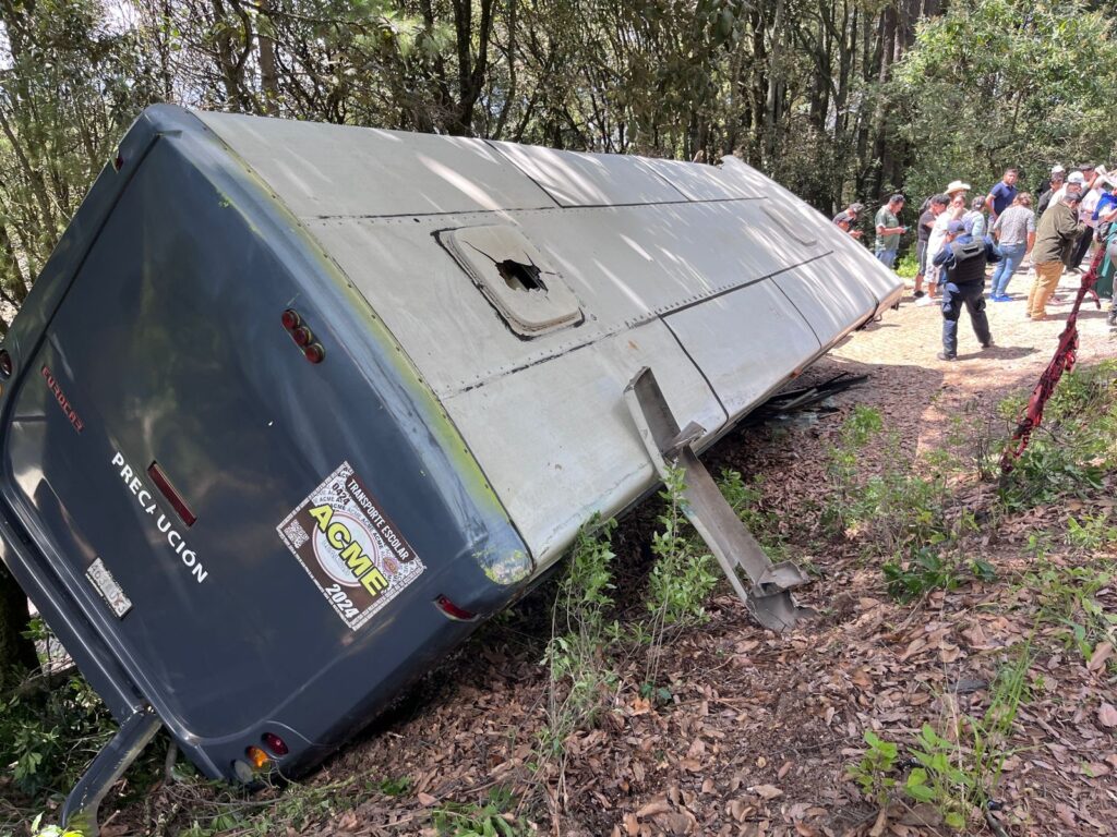 La unidad salió de la carretera al tomar una curva, quedando recostado entre árboles, el sábado después de partir de Ecatepec y tenía como destino el poblado de Ojo de Agua, de acuerdo con los primeros reportes de las autoridades.